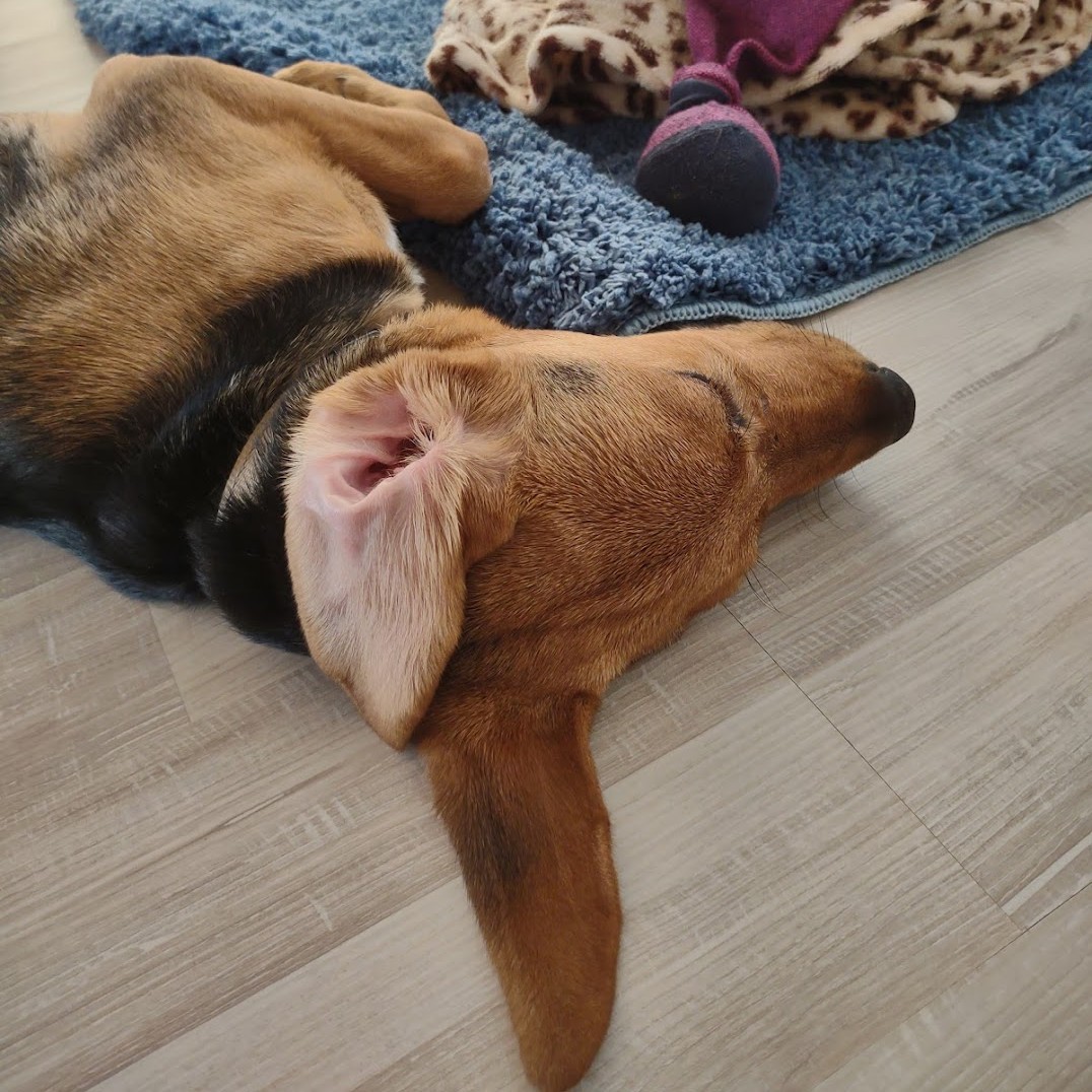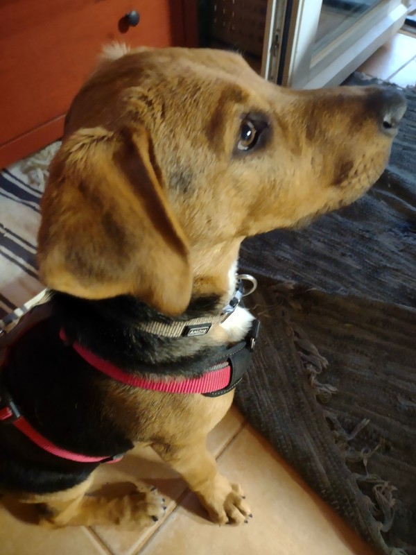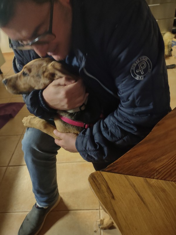 Shorty siedziała podczas rozmowy na jednym z moich butów i flirtowała z Eliasem. Sprytny pies, pomyślałam w tym momencie, próbuje utrzymywać kontakt z obojgiem w tym samym czasie, haha. Podczas pierwszej wizyty Roswitha, jej opiekunka i wolontariuszka z MIAO, przekazała nam więcej informacji na temat tego wspaniałego 4,5 miesięcznego szczeniaka. Po kilku minutach zabraliśmy Shorty na krótki spacer. W naszym samochodzie było bardzo cicho w drodze do domu, oboje wiedzieliśmy, że decyzja „tak” została podjęta.